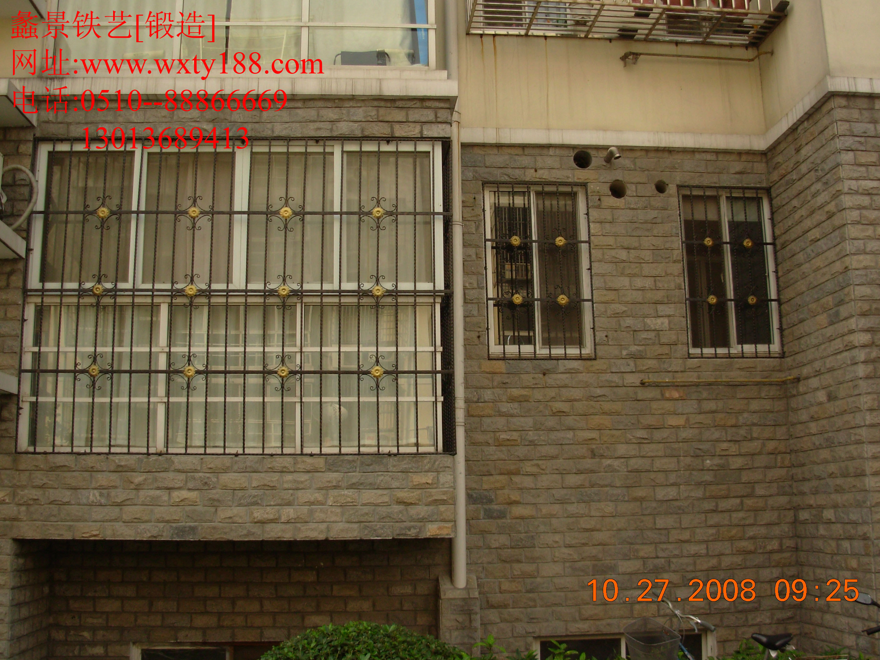 這款TYC-001型號窗是無錫鐵藝護欄廠為住宅小區定制的。此窗主要由橫豎的線條構成,簡單實用,既有防護的作用,在線條交匯處采用鎏金的點綴,簡單中又可見其匠心獨運。