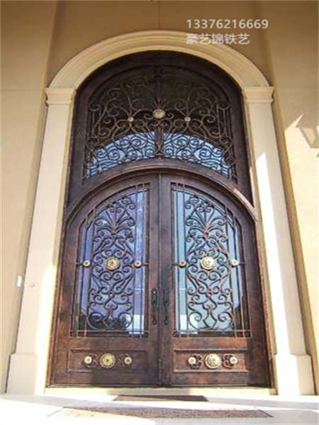TYM-016型號大門是無錫鐵藝護欄廠為高檔別墅、酒店所設計的一款歐式的典雅、復古的鐵藝大門。該款鐵藝門為經典的歐式入戶門系統,它的制作開創國內大面積使用玻璃、鐵藝、優質鋼材組合的先例。此款門的門頭很高,領先眼看著就透露著威嚴。大面積的玻璃有著良好的透光性。該鐵藝門材質穩定、選材優質,可以確保玻璃安全性;保障鐵藝和富豪別墅大門的藝術獨特性。同時玻璃、鐵藝、鋼材的組合搭配,給人一種耳目一新的異域感覺。該款鐵藝門上的裝飾配件款式及設計都可以稱得上是別具匠心,門體上部、中部及下部的裝飾物使得該門從整體上看上去不會顯得單調,使得該門更加的典雅莊重、富麗堂皇。如此別出心裁的設計專為身份地位顯赫的您而設計。